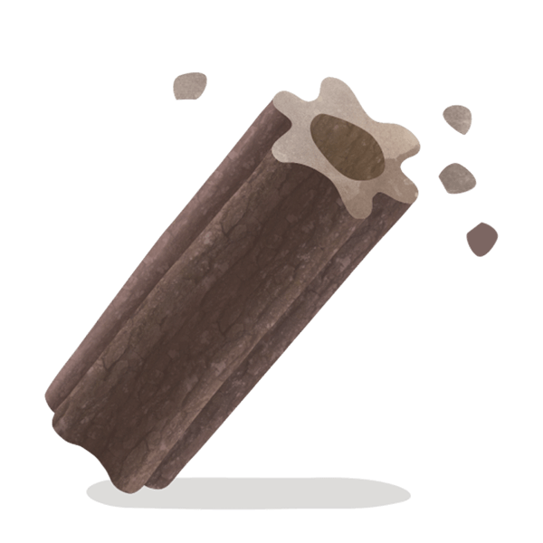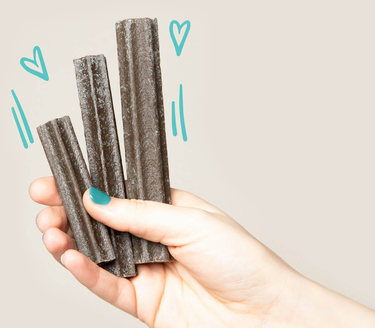Strong teeth are healthy teeth, so we add calcium to our sticks to keep your dog’s pearly whites full of fight.