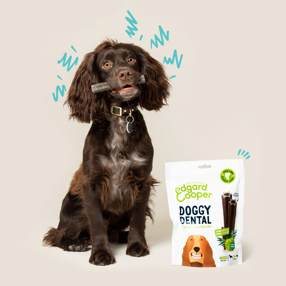Dogs need a bit of help with their dental care. Our Doggy Dental has an extra long chew time. They just work!